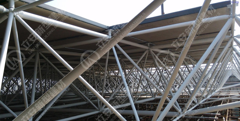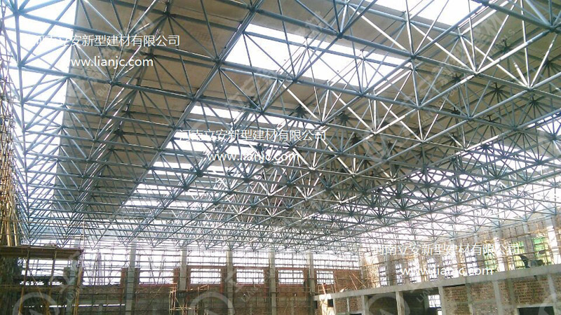 鋼骨架輕型板適用于輸煤棧橋、公共民用等建筑圍護屋面、樓面、墻面.鋼骨架輕型板由輕型鋼骨架、冷拔鋼絲網、改性水泥珍珠巖復合芯材(專有技術)、復合抗滲耐磨涂層(專有技術)組成.鋼骨架輕型板集輕質、承重、節能、防火、隔聲、泄爆、抗震等功能于一體,既保持了傳統鋼筋混凝土構件安全度高、使用壽命長的優點,又滿足了現代建筑對輕質、節能、環保的要求。